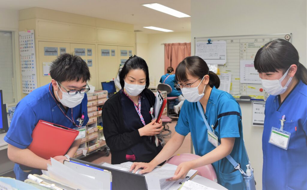 退院調整係は入院患者の退院後の生活を見据えた支援として、入院前と比べて日常生活動作の低下がみられる方、退院後の療養生活に不安のある方、退院後も医療処置が必要な方、1人暮らしで介護支援が得られにくい方など様々なケースに対して看護師の視点を活かした支援を行っています。
